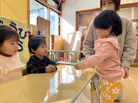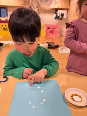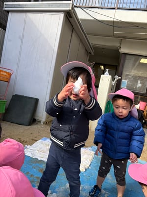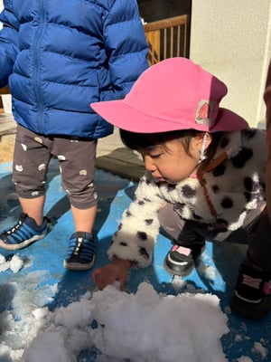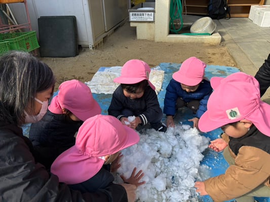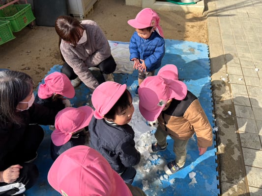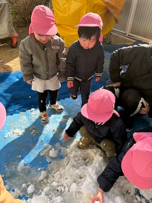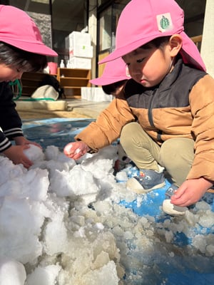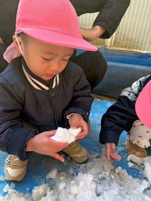 ちょうちょう組 · 2026/01/30 雪遊びをしたよ! 4,5歳のお兄さんお姉さん達が前日に雪遊びに行っていて、ちょうちょうさんにも雪のお土産をくれました! そ〜っと触ってみると、、、 「つめた〜い😆」 「それ〜!」と雪合戦をしたり小さな雪だるまを作ってみたり楽しみました☃️ 雪だるまの制作、誕生日の追加の様子です📷✨ tagPlaceholderカテゴリ: 令和7年度ちょうちょう組